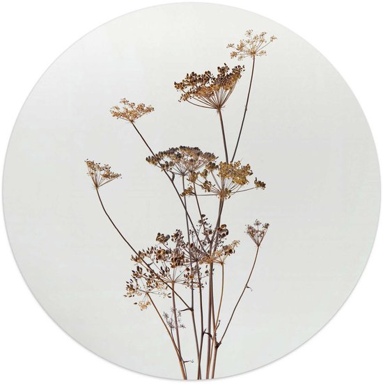 Bereklauw Nature - Plante - Séchée - Fleurs - Peinture sur Glas rond - Diamètre 50 cm