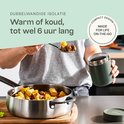 « J'utilise ce pot alimentaire quotidiennement pour mes flocons d'avoine ou ma soupe. Reste chaud pendant des heures et ne fuit pas. Heel pratique car il est compact et se glisse facilement dans mon sac." – Nienke