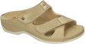 Babouche pour femme en cuir beige de la marque Berkemann. La semelle intérieure est amovible, idéale pour les orthèses.