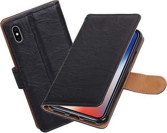 BestCases.nl Housse Apple iPhone X en cuir véritable de type livre en cuir noir