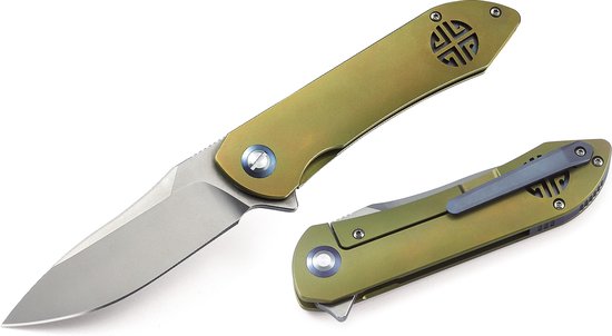 La poignée de l'Emperor BT1703B est en titane de qualité supérieure dans une couleur dorée élégante. Ce matériau offre non seulement une prise solide et légère, mais contribue également à l’aspect luxueux général du couteau. La conception de la poignée offre une prise ergonomique et confortable, idéale pour une utilisation à long terme.