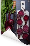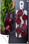Betteraves rouges grillées sur une planche à découper blanche Affiche de jardin 60x90 cm - Toile de jardin / Toile d'extérieur / Peintures pour l'extérieur (décoration de jardin)