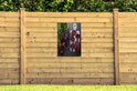 Les Posters de jardin sont spécifiquement adaptées à une utilisation en extérieur. Ce tissu peut donc prendre un coup. Une bâche en bisonyle a été utilisée pour la bannière. Cette voile est une bâche enduite avec une belle finition. L'affiche de jardin est résistante aux UV et imprimée au latex, elle ne se décolore donc pas au soleil. Un anneau a été placé dans chaque coin du tissu, afin que vous puissiez facilement accrocher le tissu. Enfin, la toile est excellente à haute ou basse température et contient de l'encre qui durera au moins 3 ans.