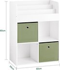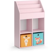 Bibliothèque pour enfants Rootz avec 2 boîtes en tissu - Étagère à jouets - Support de rangement - Construction en MDF - Verrouillage d'inclinaison mural - Conception peu encombrante - 60 cm x 36 cm x 20 cm