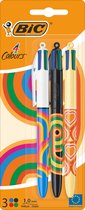 Stylo à bille rétractable BIC 4 couleurs dégradées - Motifs dégradés tricolores - 3 pièces - Pointe Medium 1 mm