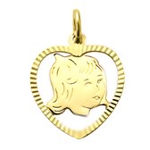 Pendentif tête de cordonnier en or jaune à bord dentelé en forme de coeur disponible en 8 et 14 carats.