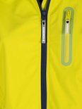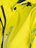 Grâce au tissu extensible, cette softshell se porte librement et confortablement. La doublure en filet est respirante et régule donc l'humidité. De cette façon, vous arrivez à destination rafraîchi. Cette veste d'été légèrement ajustée possède un col montant à capuche avec un cordon élastique. Le softshell protège du vent et de la pluie. Le rabat derrière la fermeture éclair et le panneau arrière allongé (tissu dans le bas du dos) protègent également la softshell du vent. Le tissu en polyester rend la veste hydrofuge. La veste d'été possède des poches zippées sur la hanche et la poitrine. Il y a une poche à l'intérieur qui peut être fermée avec du velcro. Des détails réfléchissants ont été appliqués sur la poitrine et autour des épaules pour être visibles dans l'obscurité et au crépuscule.