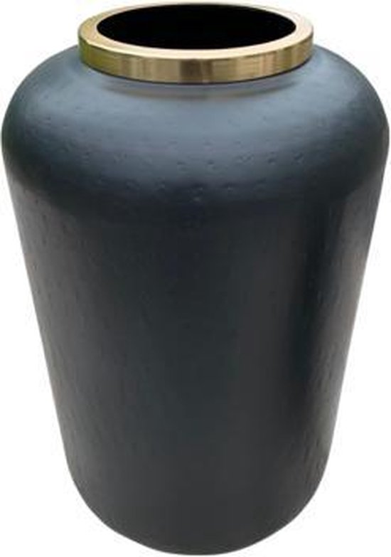 Vase Valencia est en métal. Le vase est disponible en deux tailles : un diamètre de 30cm avec une hauteur de 16cm et un diamètre de 42cm et une hauteur de 25cm. Le vase est de couleur noir mat avec un bord doré chic et résistant à l'eau. Parce que les vases sont fabriqués à la main, chaque article est unique et peut différer légèrement de la photo. Les petites imperfections sont la preuve vivante que les vases sont purement faits à la main ! Vase Valencia est un accroche-regard dans votre intérieur. Ce vase rond noir au rebord doré s'intègre dans un intérieur chic ou plus industriel. Le vase est beau avec des fleurs fraîches, mais aussi avec des fleurs séchées ou des fleurs artificielles et une seule branche ou branche fleurie. Vous pouvez facilement changer chaque saison avec laquelle vous pouvez donner à votre intérieur un nouveau look en un instant. Et sans rien dedans, ce vase illumine également ce coin ennuyeux. Le vase est intemporel dans sa forme, sa couleur et sa matière. Un véritable must-have pour votre intérieur ! Un beau cadeau à quelqu'un d'autre ou à vous-même !