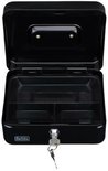BLACK+DECKER Cash Box avec clé - Tiroir amovible avec 3 compartiments - Incl. 2 Clés - 20 x 16 x 8,5 CM - Métal - Zwart