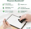 Le bloc-notes Bambook à couverture rigide avec une reliure à anneaux sur le dessus ! Disponible au format A3 et A4. Perfect pour les gauchers, la rédaction de dossiers, le brainstorming et les présentations. Chaque Bambook possède 20 feuilles effaçables, soit 40 pages. Bambook Notepad est le bloc-notes effaçable. Choisissez le format et les pages qui conviennent à votre méthode de travail. Les deux tailles ont une couverture en bambou robuste et solide. Cela donne une touche luxueuse à ce produit. Les deux blocs-notes conviennent aux gauchers. Astuce bonus : les deux Bloc-notes peuvent être placés à la verticale pour des présentations, par exemple. Posez votre bloc-notes horizontalement pour un espace de travail plus large.