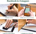Le bloc-notes Bambook à couverture rigide avec une reliure à anneaux sur le dessus ! Disponible au format A3 et A4. Perfect pour les gauchers, la rédaction de dossiers, le brainstorming et les présentations. Chaque Bambook possède 20 feuilles effaçables, soit 40 pages. Bambook Notepad est le bloc-notes effaçable. Choisissez le format et les pages qui conviennent à votre méthode de travail. Les deux tailles ont une couverture en bambou robuste et solide. Cela donne une touche luxueuse à ce produit. Les deux blocs-notes conviennent aux gauchers. Astuce bonus : les deux Bloc-notes peuvent être placés à la verticale pour des présentations, par exemple. Posez votre bloc-notes horizontalement pour un espace de travail plus large.