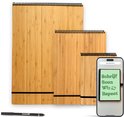 Le bloc-notes Bambook à couverture rigide avec une reliure à anneaux sur le dessus ! Disponible au format A3 et A4. Perfect pour les gauchers, la rédaction de dossiers, le brainstorming et les présentations. Chaque Bambook possède 20 feuilles effaçables, soit 40 pages. Bambook Notepad est le bloc-notes effaçable. Choisissez le format et les pages qui conviennent à votre méthode de travail. Les deux tailles ont une couverture en bambou robuste et solide. Cela donne une touche luxueuse à ce produit. Les deux blocs-notes conviennent aux gauchers. Astuce bonus : les deux Bloc-notes peuvent être placés à la verticale pour des présentations, par exemple. Posez votre bloc-notes horizontalement pour un espace de travail plus large.