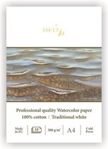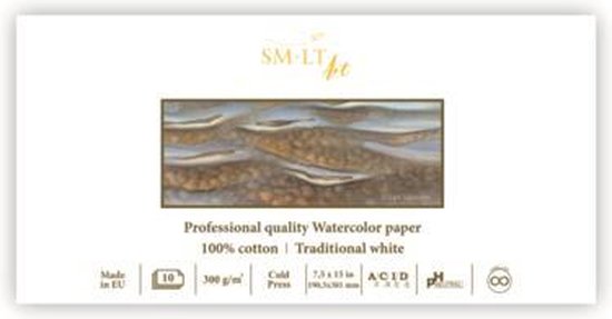 Ce papier aquarelle classique pressé à froid est fabriqué à partir de papier recyclé avec du coton. Le bloc a une couverture arrière rigide. Idéal pour l'aquarelle, l'acrylique, l'encre, le stylo, le crayon, le fusain. 10 feuilles de 300 gr.