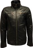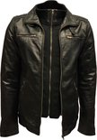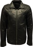 Blouson homme en cuir noir avec col amovible - 100% cuir véritable - Albert - 3XL