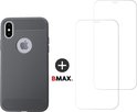 BMAX 2-pack de protection d'écran en verre pour iPhone X avec BMAX souple en carbone gris
