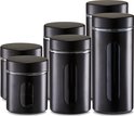 Bocaux de conservation avec fenêtre - 6x - noir - 600 à 1200 ml - métal