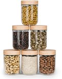 Bocaux de conservation Organess avec couvercle en Bamboe - Lot de 6 - Glas avec couvercle - Bonbonnière - Bocaux de conservation en verre