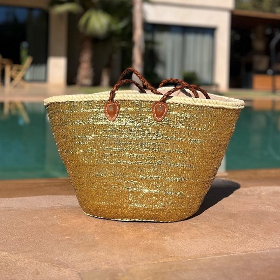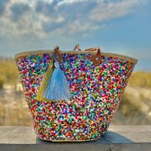 Bohemida- Sac en osier - Boho Ibiza Shopper bag/Sac de plage - Paillettes Goud - Sac shopping - Sac panier - Panier shopping