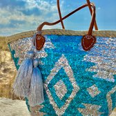 Ce magnifique sac de plage de luxe de la collection Bohemian de Bohemida est plein de paillettes scintillantes ! Disponible dans de nombreuses couleurs différentes ! Les Sacs de shopping ont une doublure assortie avec une fermeture à cordon. De cette façon, vous protégez le contenu du sac et portez le sac en toute sécurité sur votre porté épaule ou à la main.Les dimensions sont de +/- 50 cm de large x 33 cm de haut x 20 cm de profondeur.Parce que chaque article est fait à la main, les dimensions/couleurs peuvent varier légèrement.Ce qui rend chaque sac unique !Matière ; roseau, cuir, doublure en coton, paillettes