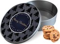 Boîte à biscuits Snowy Christmas Trees rond 15 x 15 x 5 cm Pot à biscuits avec motif d'arbres de Noël enneigés