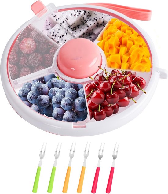Inovra ® Découvrez la boîte à collation polyvalente avec cinq compartiments pratiques, conçue pour transporter facilement une variété de collations et de fruits. Fabriquée en polypropylène sans PVC, cette boîte à collation est à la fois lavable au lave-vaisselle et résistante à l'eau pour un nettoyage facile. La fonction rotative, actionnée par un bouton, rend non seulement le jeu plus amusant pour les enfants, mais favorise également leur motricité fine et globale. Idéalement dimensionnée pour les mains des petits enfants, cette boîte à collation est parfaite pour les déplacements. La conception robuste et portable, ainsi qu'un couvercle hermétique, garantissent que les collations sont conservées en toute sécurité sans se renverser. Comprenant quatre petites fourchettes, la boîte à collation rotative offre une solution complète pour un usage quotidien, à la maison comme à l'extérieur. Un accessoire indispensable pour les parents qui souhaitent offrir à leurs enfants des collations saines de manière ludique et interactive.