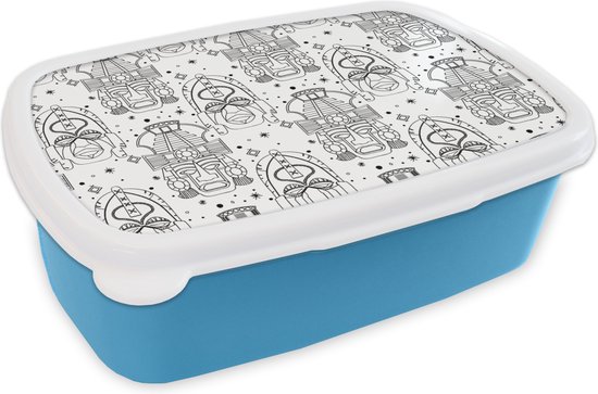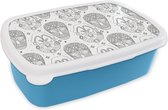 Boîte à lunch Blauw - Boîte à lunch - Boîte à pain - Inca - Rituels - Masques - Motif - 18x12x6 cm - Enfants - Garçon - Cadeau Sinterklaas - Distribution de cadeaux pour enfants - Cadeaux chaussures Sinterklaas