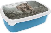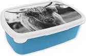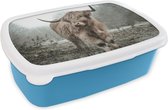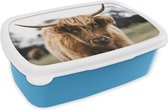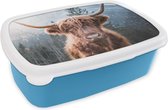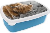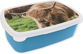 Boîte à lunch Blauw - Boîte à lunch - Boîte à pain - Scottish Highlander - Vache - Herbe - Animaux - Nature - 18x12x6 cm - Enfants - Garçon