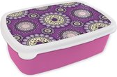 Boîte à pain rose - Boîte à lunch - Boîte à pain - Filles - Fleurs - Violet - Motifs - Fille - Kids - Enfants - 18x12x6 cm - Enfants - Fille
