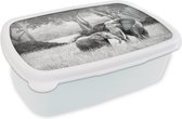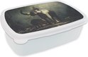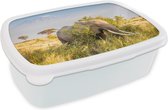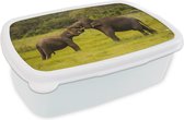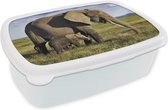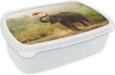 Boîte à lunch Wit - Boîte à lunch - Boîte à lunch - Dresseur d'éléphant avec un éléphant et son bébé dans la forêt - 18x12x6 cm - Adultes - Cadeau Sinterklaas - Distribution de cadeaux pour enfants - Chaussures cadeaux Sinterklaas