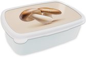 Boîte à pain blanche - Lunchbox Champignons - Doux - Beige - Boîte à lunch 18x12x6 cm