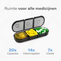 Avec la boîte à médicaments Alyze, vous pouvez organiser facilement et clairement vos médicaments et compléments pour toute la semaine. Ce pilulier pratique et compact est parfait pour un usage quotidien et idéal à emporter avec vous en voyage. Chaque jour dispose d'un compartiment séparé avec trois compartiments, afin que vous puissiez organiser clairement vos médicaments le matin, l'après-midi et le soir.