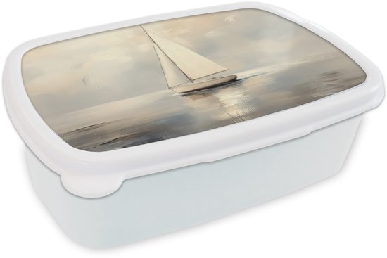 Boîte à pain blanche - Lunchbox Voilier - Mer - Nuageux - Boîte à lunch 18x12x6 cm