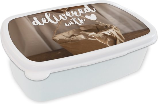 Boîte à pain Wit - Boîte à lunch - Boîte à pain - 'Livré avec amour' - Proverbes - Citations - 18x12x6 cm - Adultes - Cadeau Sinterklaas - Distribution de cadeaux pour enfants - Cadeaux chaussures Sinterklaas