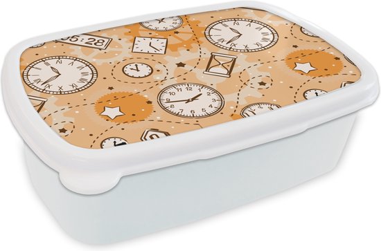 Boîte à pain Wit - Boîte à lunch - Boîte à pain - Motifs - Klok - Sablier - 18x12x6 cm - Adultes - Cadeau Sinterklaas - Cadeaux pour enfants - Cadeaux chaussures Sinterklaas