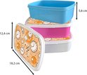 La taille de la corbeille à pain est de 18x12x6 cm. Cela rend la boîte à lunch assez grande pour votre déjeuner et également facile à transporter dans votre sac, par exemple.