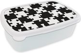 Lunch box Wit - Lunch box - Boîte à pain - Puzzle - Echecs - Motifs - 18x12x6 cm - Adultes