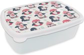 Lunch box Wit - Lunch box - Boîte à pain - Patinage - Motifs - Pingouin - 18x12x6 cm - Adultes