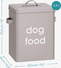 - DÉTAILS : La boîte est en fer enduit de poudre et a une capacité de 5,9 litres. Les dimensions sont de 23,4 x 18 x 15,5 cm. Une pelle à nourriture est incluse.