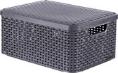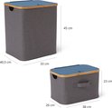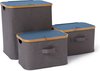 Boîte de rangement pliable Lumaland avec cadre en bambou en lot de 3 boîtes avec couvercle deux fois dans les tailles 54 x 33 x H 26 cm et 45 x 30 x H 23 cm et 38 x 26 x H 16 cm Couvercle Grijs / boîte bleue