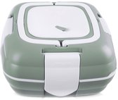 - Fabriqué en acier inoxydable - L'intérieur du thermos est en acier inoxydable. L'extérieur est en plastique de couleur menthe. Poignées de couleur grise.