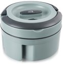 Marmite généreuse, les aliments restent bien au chaud, surtout si vous les préchauffez au préalable avec de l'eau bouillante. Ferme bien. Une valeur ajoutée serait un séparateur de compartiments/plateau d'insertion afin que les différents types restent quelque peu séparés. Mais il s’agit plutôt d’un conseil pour le fabricant. Je résous ce problème en mettant moi-même un gobelet en plastique pour la sauce/la viande, etc. dans le récipient.