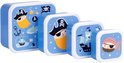 Cet ensemble incroyablement amusant de boîtes à lunch et à collations de A Little Lovely Company se compose de quatre tailles différentes, chacune avec sa eigen impression. Les impressions se composent de divers pirates, de navires, d'un requin, d'un coffre au trésor et d'autres images sympas.