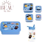 Avec cet ensemble pratique, vous pouvez aller dans toutes les kanten . Par exemple, vous pouvez utiliser le plus grand comme boîte à lunch et les trois plus petits pour des fruits et des collations savoureuses. Mais ils ne sont pas seulement utiles pour l'école, mais bien sûr aussi lorsque vous sortez pour la journée. Et qui sait, vous pourriez non seulement les utiliser pour stocker de la nourriture, mais aussi pour vos petits objets. C'est donc pratique de les avoir à la maison !