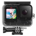 - Étanche jusqu'à 50 mètres. Avec ce boîtier waterproof, vous pouvez plonger jusqu'à 50 mètres de profondeur. Le couvercle et la lens ont un bord en caoutchouc, ce qui rend le boîtier complètement étanche.