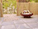 - Equipé de pieds pour que le foyer soit stable sur la terrasse