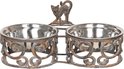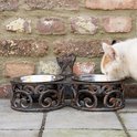 relaxdays double bol de nourriture pour chien antique - acier inoxydable - fonte - 2 bols de nourriture chacun 0,3 l - brun