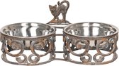 Clayre & Eef Bols d'alimentation pour chien 2x750 ml Marron Fer Rond Chat Bols d'alimentation pour chat