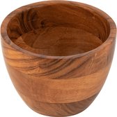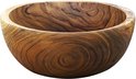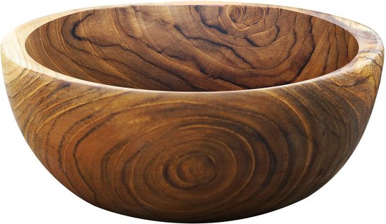 Le bol Lisa d' een maat de 16 cm est un article beau et fonctionnel de notre vaste collection. Il est fait de teak et tourné à la main sur un tour par des ouvriers qualifiés de l'industrie du meuble et de l'artisanat du centre de Java, et leur expérience est évidente dans l'exécution équilibrée et de bon goût. En raison des côtés légèrement incurvés et de la lèvre droite, tous les bols sont assez uniformes et peuvent être achetés en ensembles. Une fois le travail de la machine terminé, le bol est poncé et poncé jusqu'à ce qu'il soit super lisse, puis enduit plusieurs fois d'huile minérale de qualité alimentaire. L'huile minérale peut être utilisée en toute sécurité avec des ustensiles de cuisine car elle est non toxique et complètement transparente, et elle a également l'avantage supplémentaire d'améliorer la couleur du teak et de faire ressortir les caractéristiques du bois. Servez à vos invités petites salades et en-cas dans le bol Lisa 16 cm.