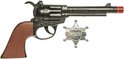 - 1x Cowboy speelgoed pistolet déguisé noir avec étoile de shérif 24 cm