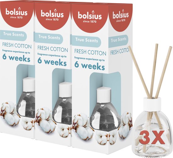 Bolsius True Scents - Bâtons parfumés - Fresh Cotton - 3 pièces - Pack économique - 60 ml